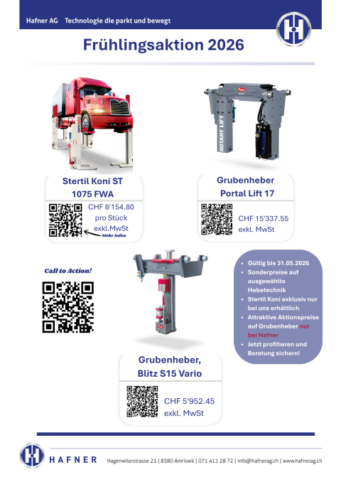 Profitieren Sie jetzt von unserer Frühlingsaktion auf drei Top-Produkte aus unserem Sortiment: Lösungen von Stertil Koni, Blitz und Rotary stehen für Qualität, Zuverlässigkeit und Effizienz im Werkstattalltag.
